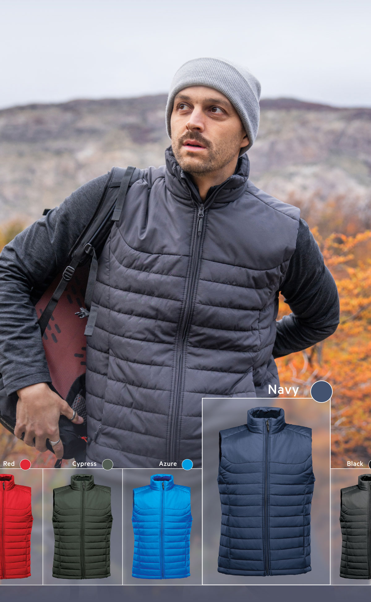 Men who love the outdoors and keeping with the fashion trends. Add some warmth. For the ultimate in thermal layering convenience, simply throw on this ultra-light, quilted vest when the temperature takes a dip. A D/W/R water-repellent finish and synthetic down fill keeps your core warm and dry all day.