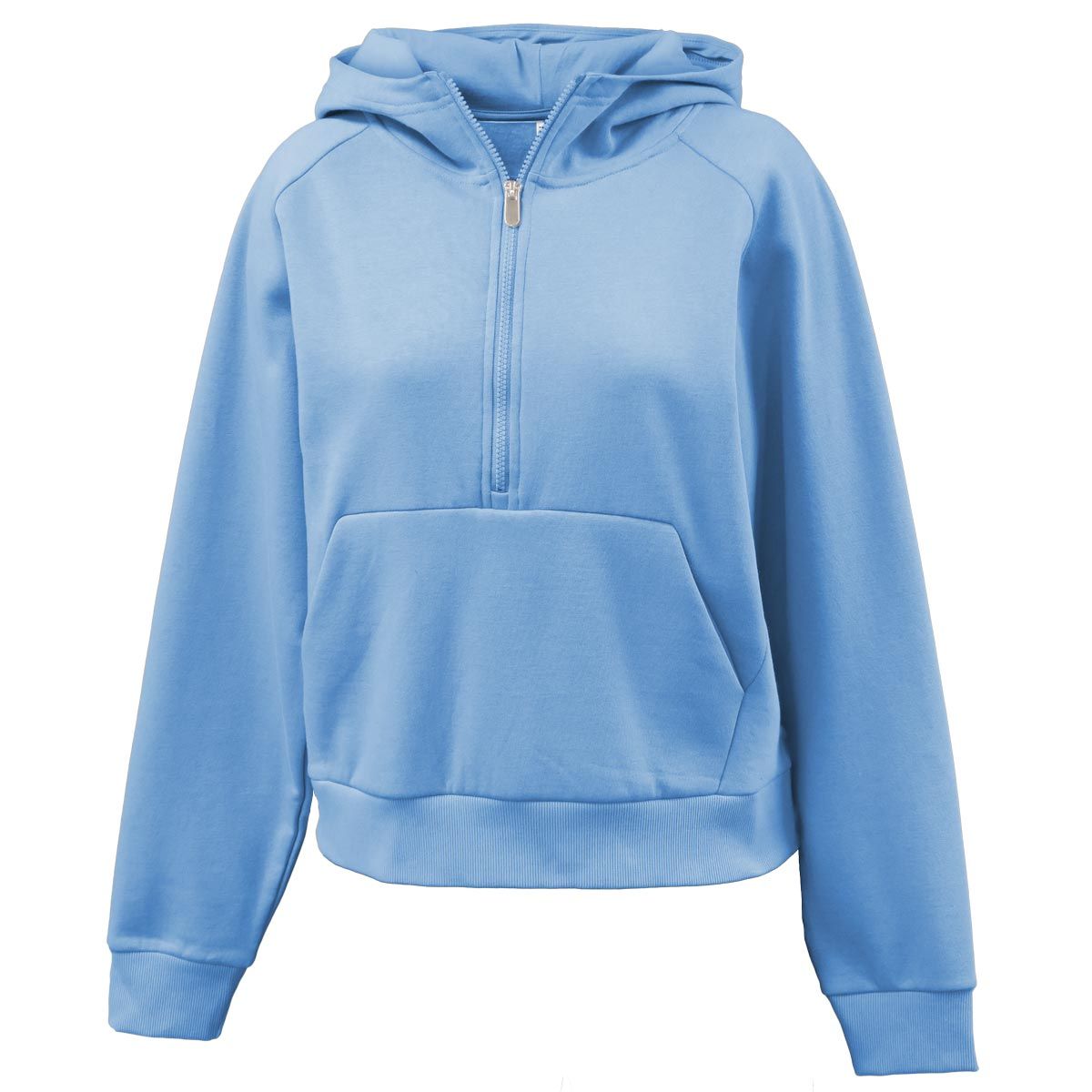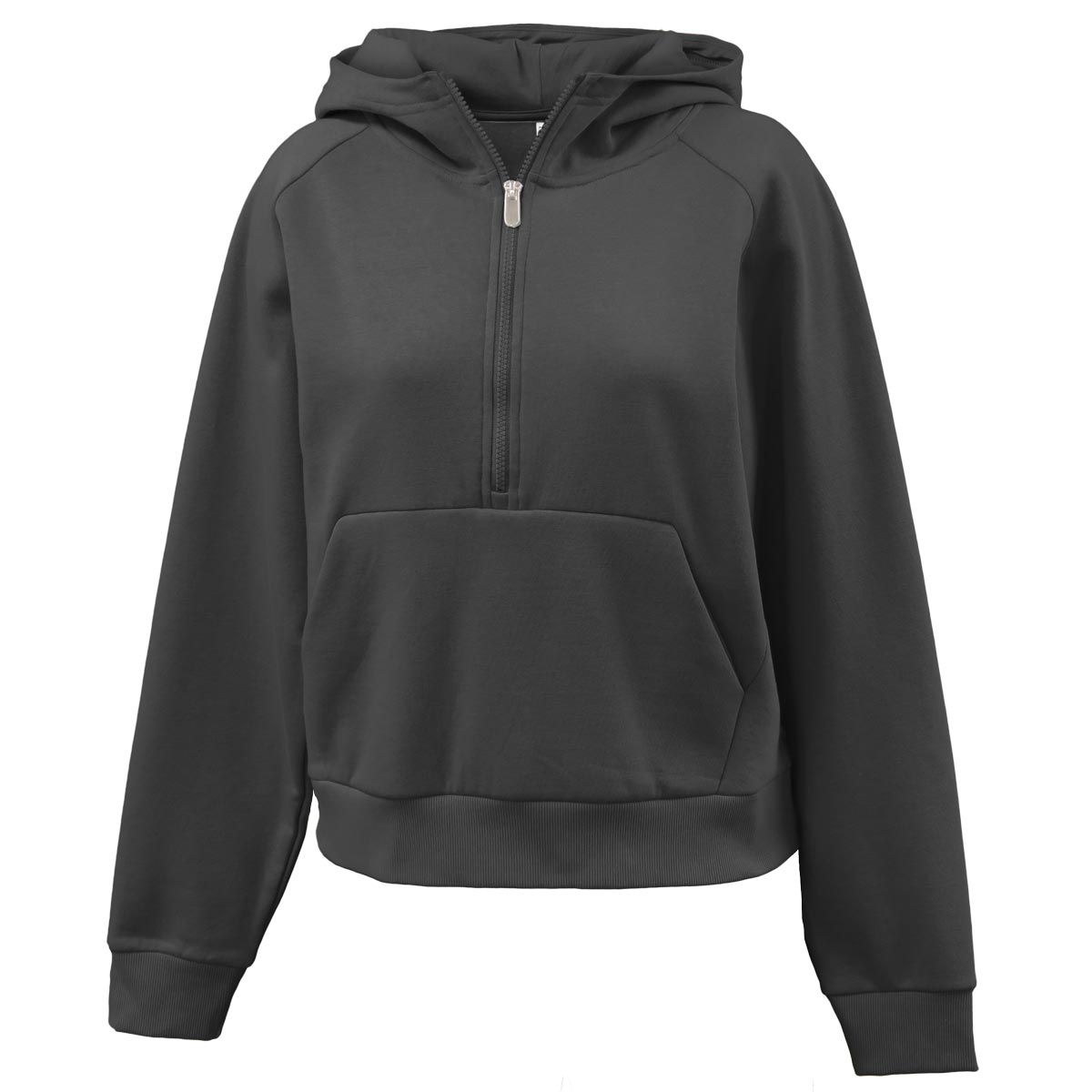 New supersoft fleece cozy half-zip placket fully lined hood raglan sleeve pouch pocket waist length women’s fit rib cuffs and bottom 60% cotton/ 40% poly Embroidery LC – Transform Fitness Logo